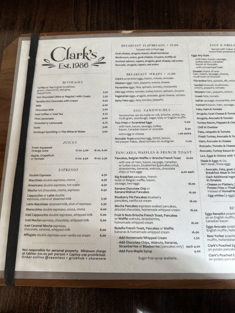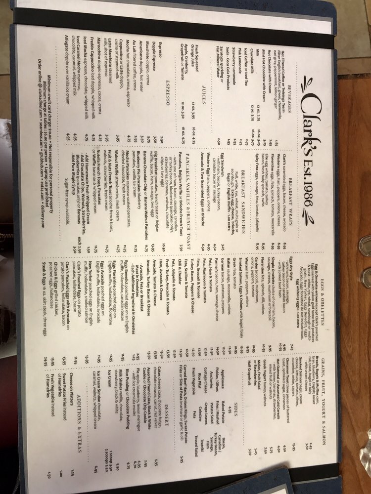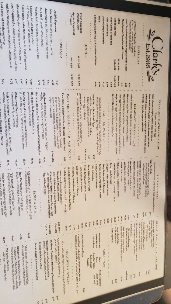 Clark's Restaurant Menu (2025 Update)